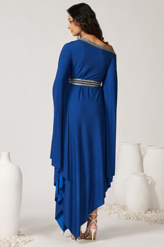 Blue Poly Jersey Asymmetrical Kurta With Belt