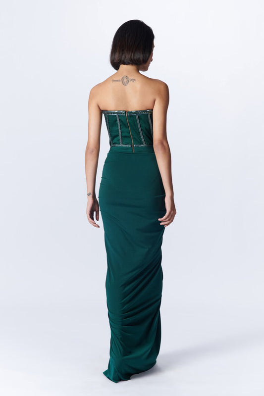 CRYSTALVEIN CHIFFON DRAPED GOWN WITH WINGS