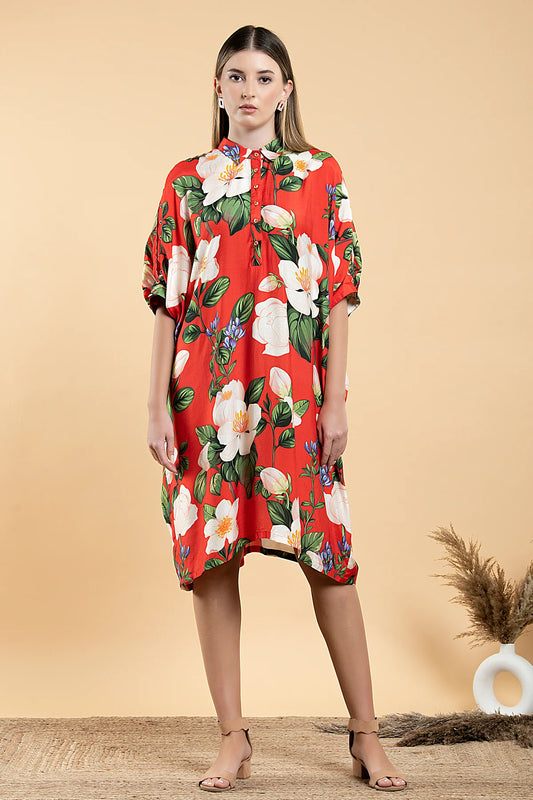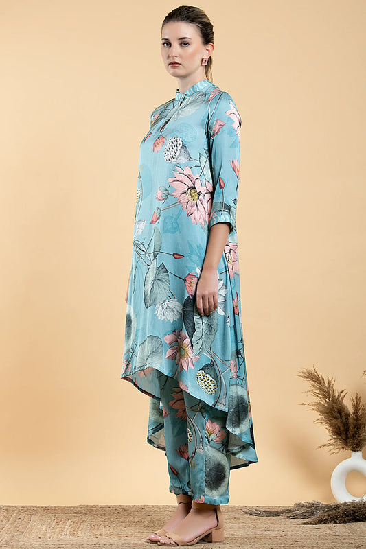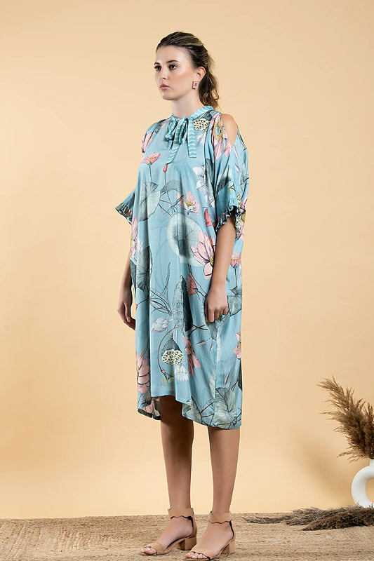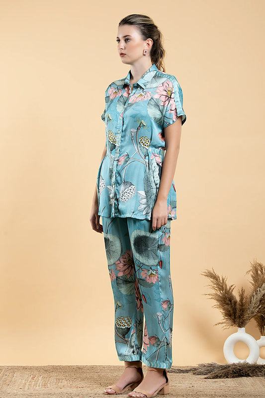 NELUMBO ASYMETRICAL SUMMER SATIN TUNIC SET