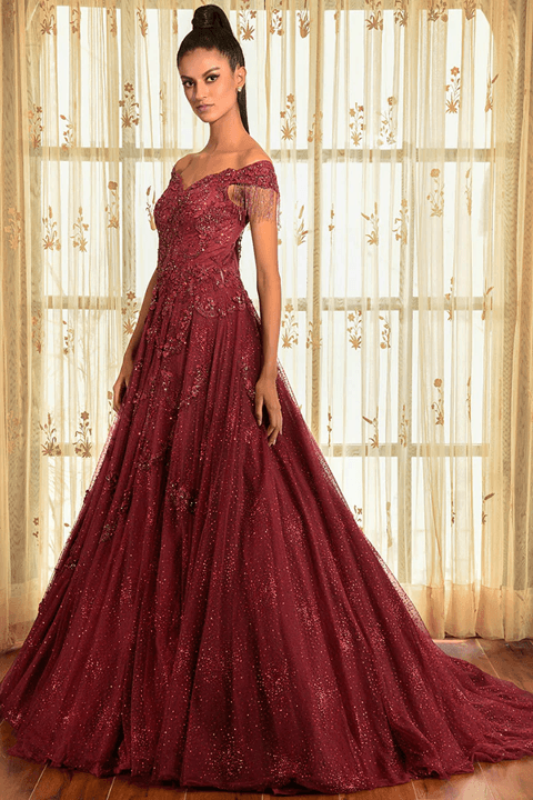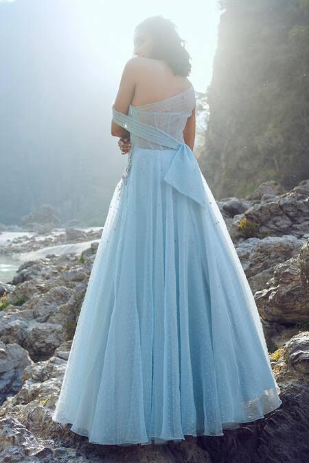 Blue Dobby Organza Embroidery One Shoulder Grace Gown
