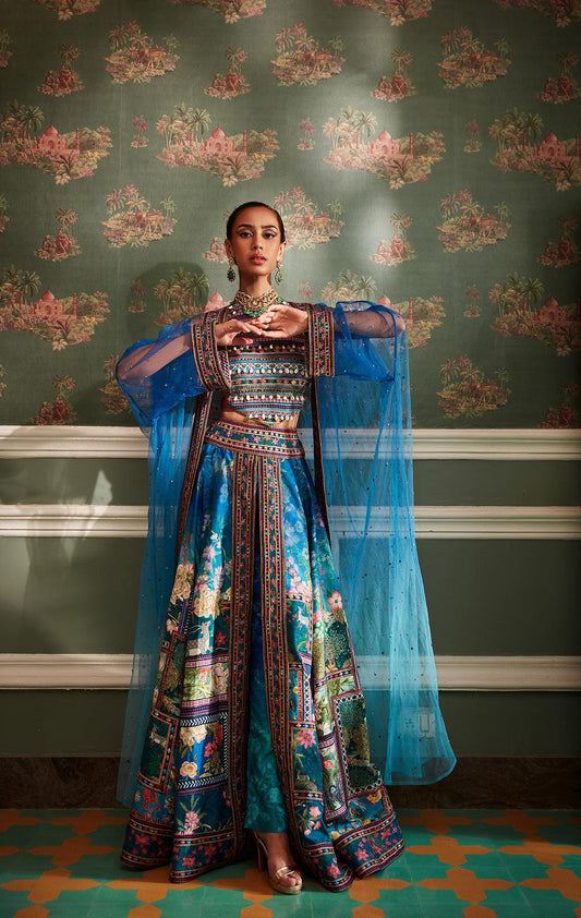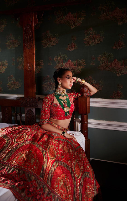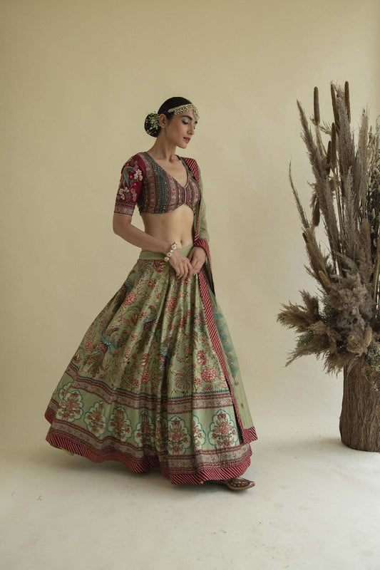 Yellow Viscose Silk Hand Painted Nazira Print Bridal Lehenga Set