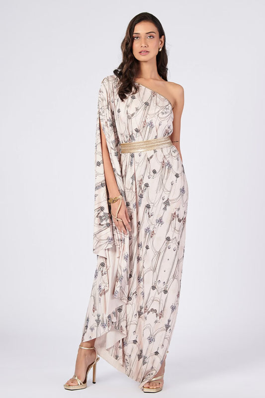 Asymmetric Off-Shoulder Kurta with Gold Details