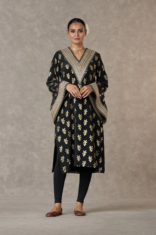 Fiza Black Phiran Kurta with Churidar and Matching Potli