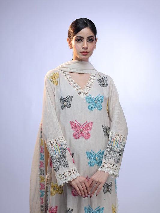 GULBAHAAR HAND EMBROIDERED CREPE PRINTED MATCHING SET