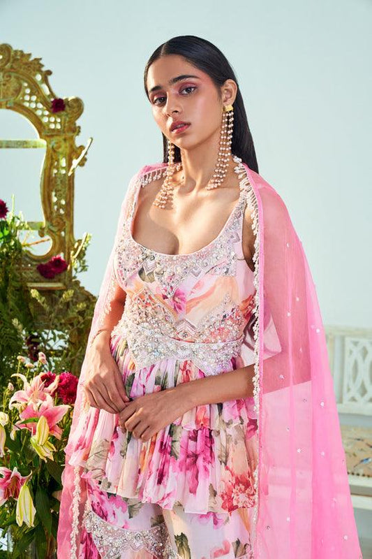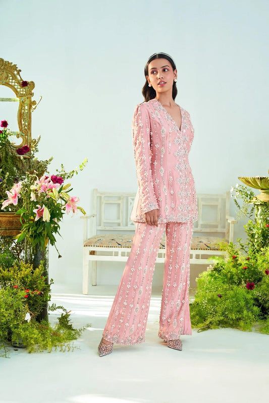 Mia Rust pink embroidered jacket & pant set.