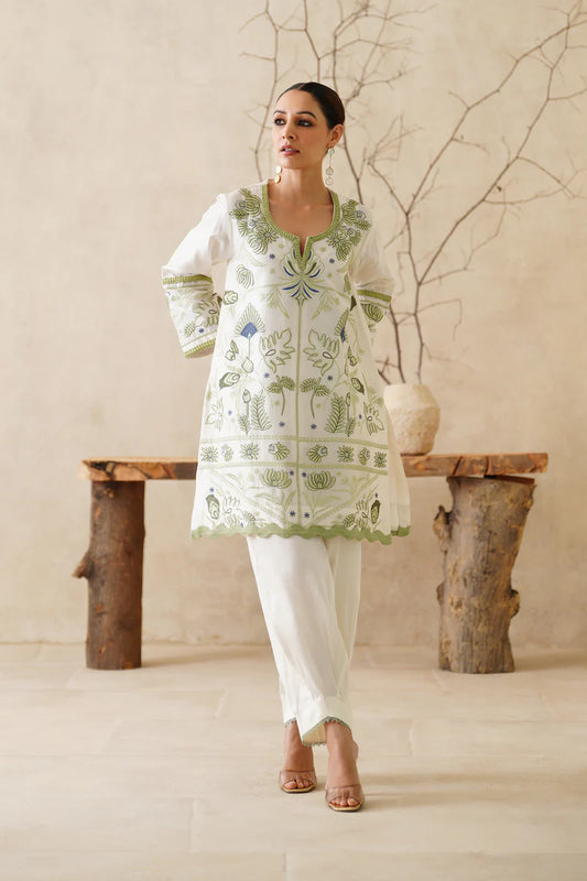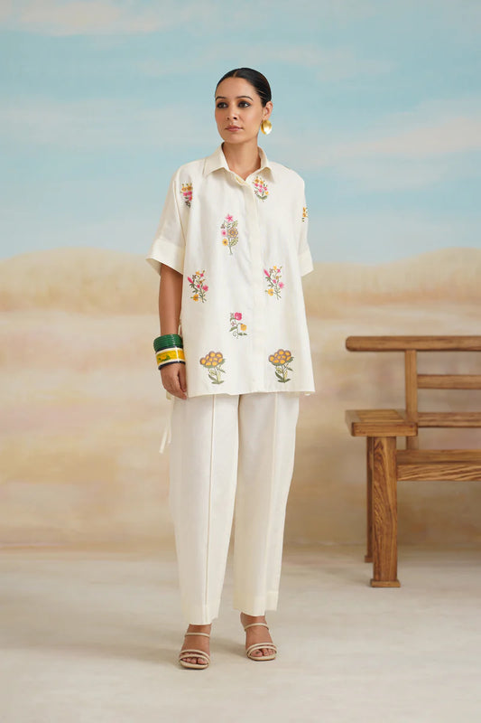 KSHIRA PURE LINEN EMBROIDERED MATCHING SET
