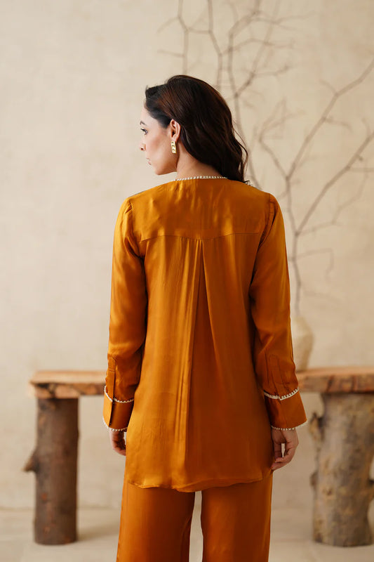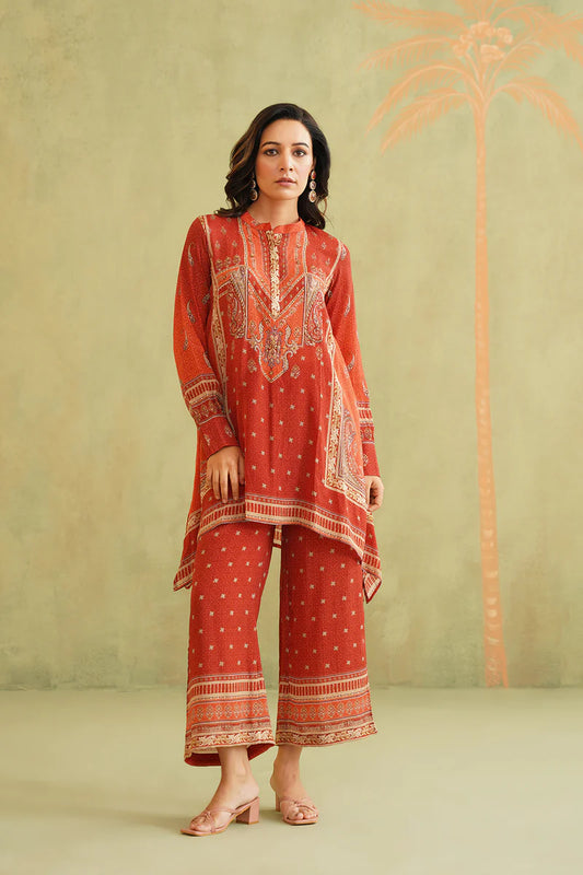 TERRACOTTA HAND EMBROIDERED CREPE MATCHING SET