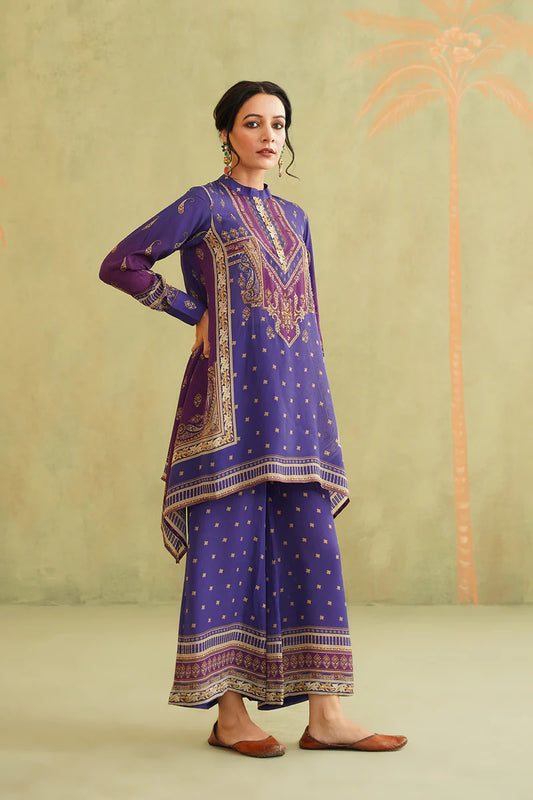 ROYAL PURPLE HAND EMBROIDERED CREPE MATCHING SET