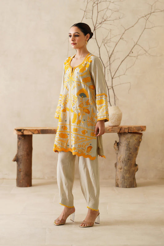 SUNSHINE YELLOW HAND EMBROIDERED MATHCING SET