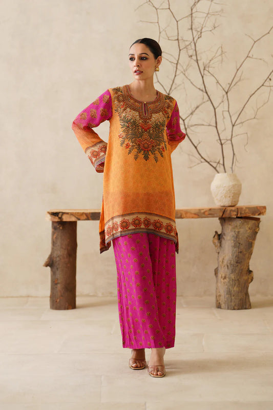 RUHANI HAND EMBROIDERED CREPE PRINTED MATCHING SET