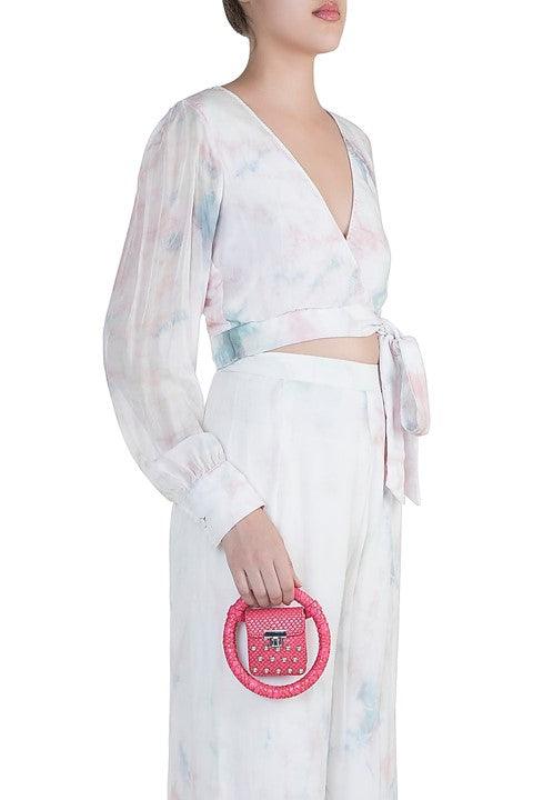 Pink Embroidered Circular Minaudiere Bag