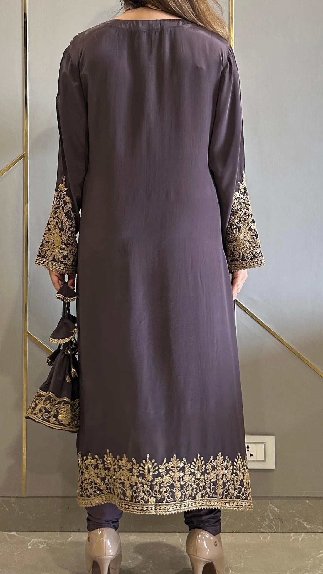 Featuring phiran co-ord set crafted in our luxurious crepe and optional potli