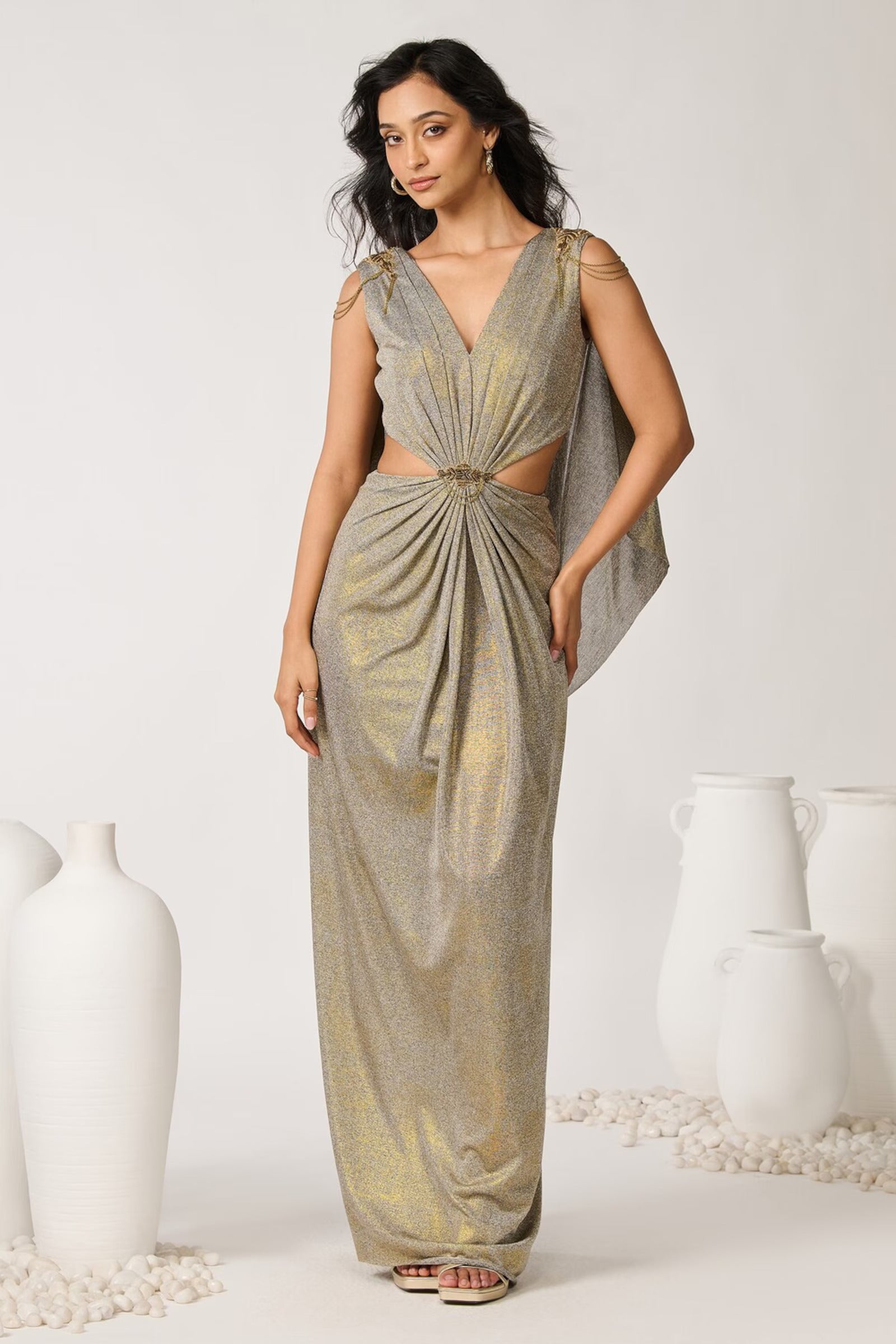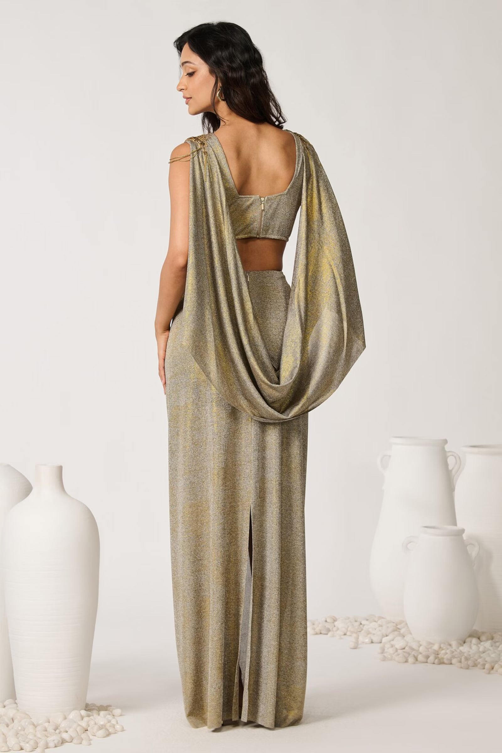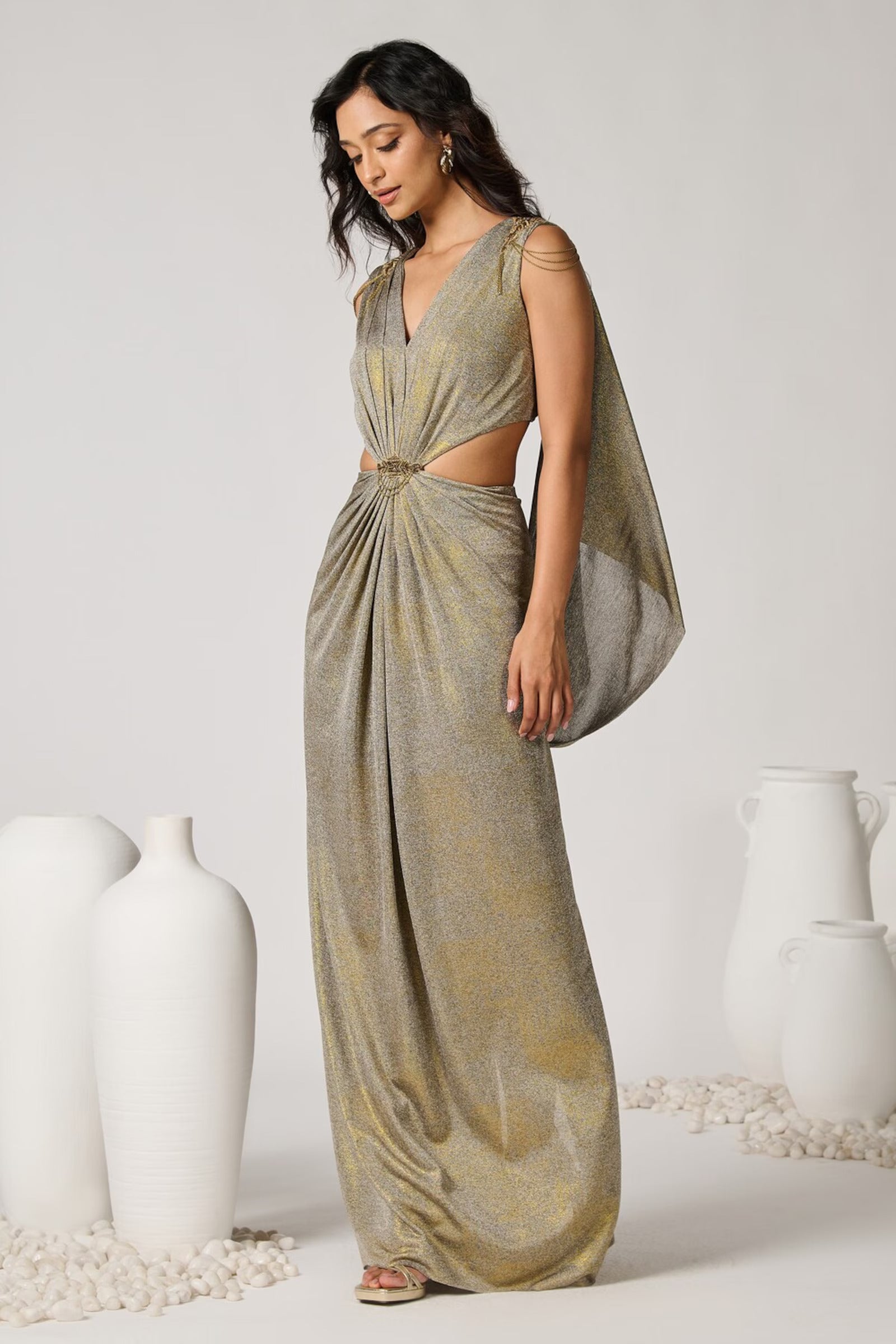 Gold Foil Cape Drape Gown
