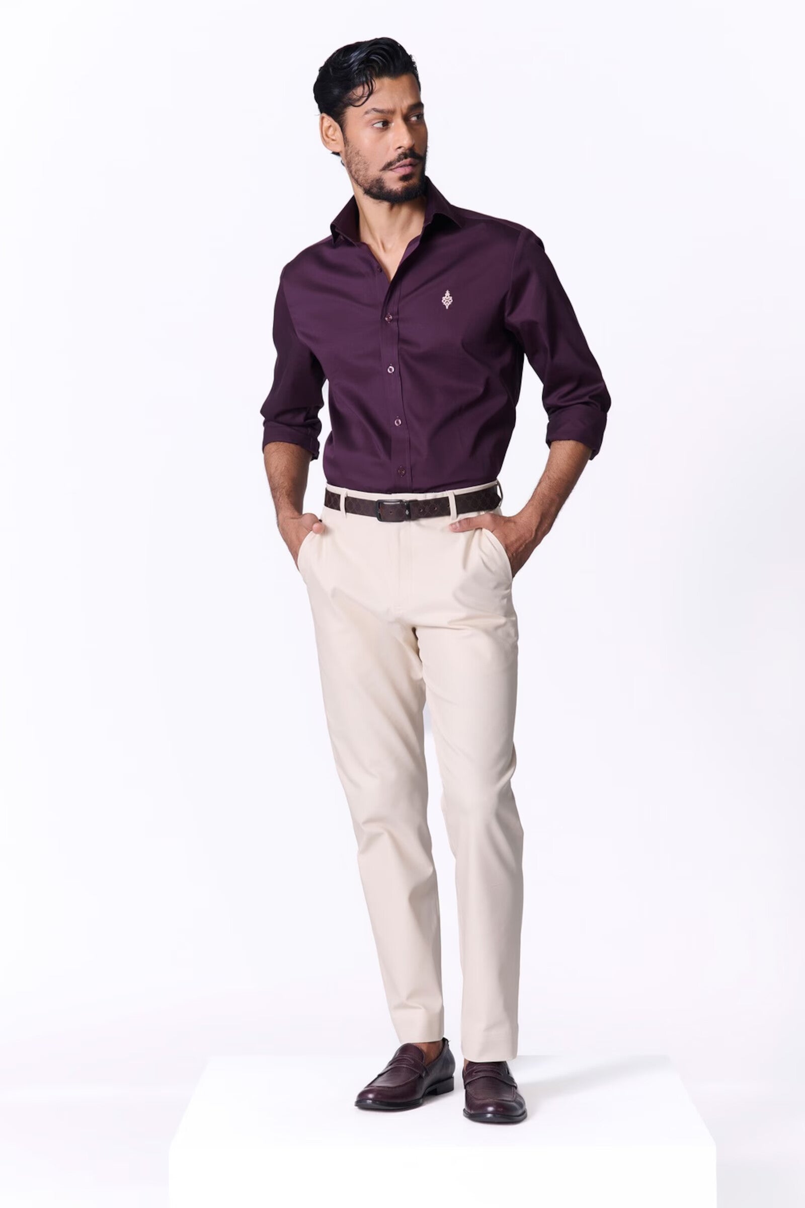 A must-have classic burgundy shirt with an embroidered beige Adamas, perfect for your everyday, round-the-clock look.