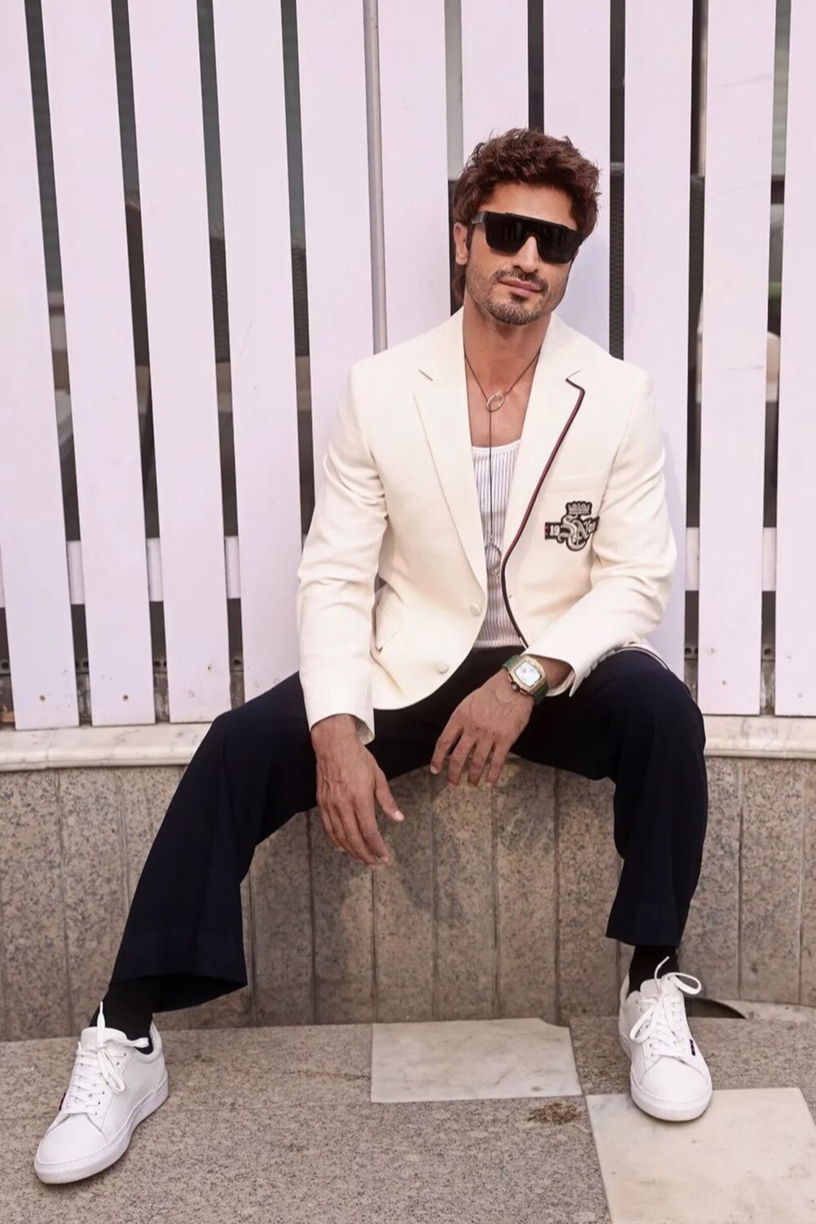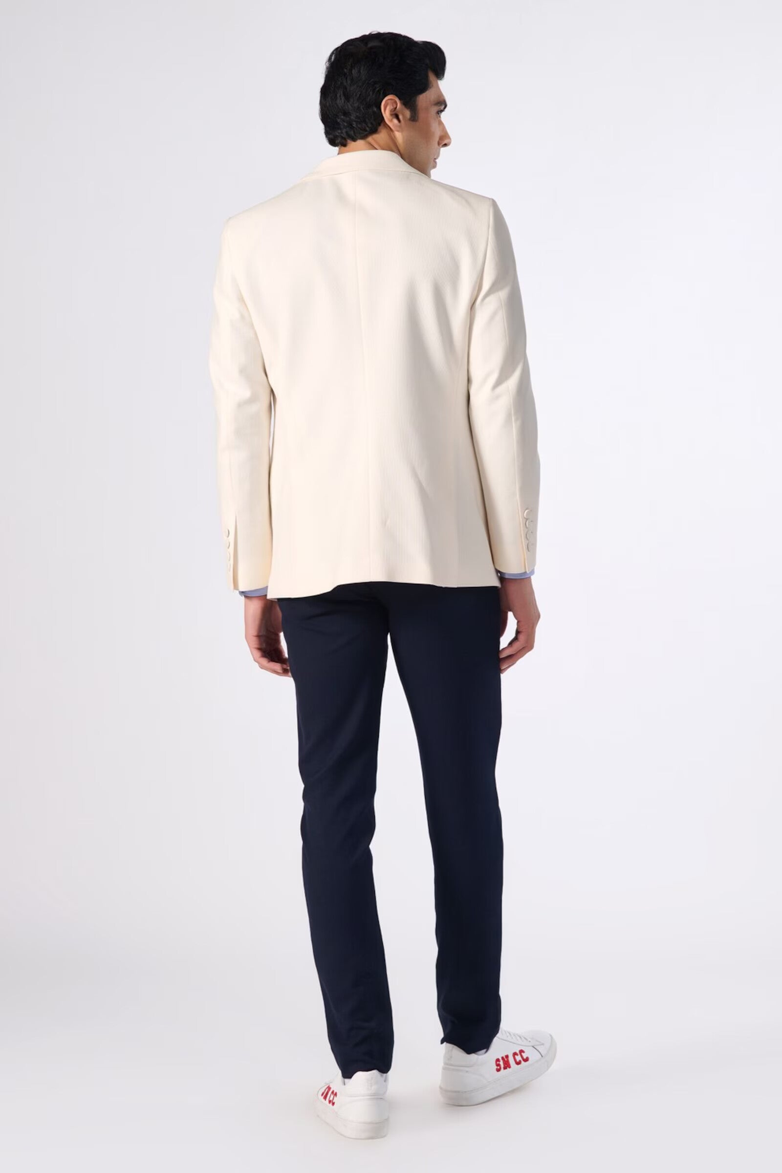 Shantnu Nikhil Cricket Club exclusive. This beige jacket is curated to preserve cricket's stylistic hallmark and empower a culture where cricket is celebrated as a lifestyle. The contrasting pipe detailing and SNCC patch logo highlight the athletic-chic value of the ensemble. Designed for a Slim Fit. Take one size larger than normal
